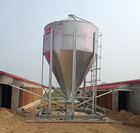自動食槽(箱) 集約化和現(xiàn)代化養(yǎng)豬從哺乳仔豬的補飼直到斷乳后的幼豬、后備豬、繁殖母豬以及生長肥育豬均采用自由采食的飼養(yǎng)方式,因此,需要不間斷供料的自動食槽。自動食槽就是在食槽的上部安放一個飼料貯存箱,貯存一定量的干粉料或顆粒料,在豬采食時貯存箱內(nèi)的飼料靠重力不斷流入食槽內(nèi), 供豬采食。自動食槽的優(yōu)點是,自動限制落料,吃多少落多少,不撒漏飼料,干凈衛(wèi)生,自由采食時有間隔欄限位,豬只不爭斗,有利于生長發(fā)育,便于實現(xiàn)機械化和自動化添料,提高勞動效率。常用的自動食槽有長方形和圓形兩種,采用長方形者居多,每一種又根據(jù)豬只的大小做成幾種規(guī)格。①長方形自動食槽。分單面和雙面兩種。單面具有靈活性,但占地面積大,投資較多。雙面的節(jié)約投資,管理也比較方便。長方形自動食槽常用鍍鋅鐵板或冷軋鋼板制造, 也可用半金屬半鋼筋水泥或全鋼筋水泥制造。半金屬半鋼筋水泥自動食槽的底槽、側(cè)板用鋼筋水泥部件,其他部分為金屬結(jié)構(gòu)。用全部或部分鋼筋水泥件做的自動食槽造價低,壽命長,但較笨重。②圓形自動食槽。制作原理與長方形的基本相同,飼料桶可以上下移動和轉(zhuǎn)動,以便控制和促進飼料流落。通常,自動食槽的圓桶用不銹鋼板制造,而底座則用鑄鐵或鋼筋水泥制造。